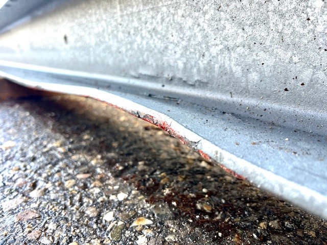 Hat Gebrauchsspuren, verbogene Kante ( Bild 3), Löcher (Bild 4+5).